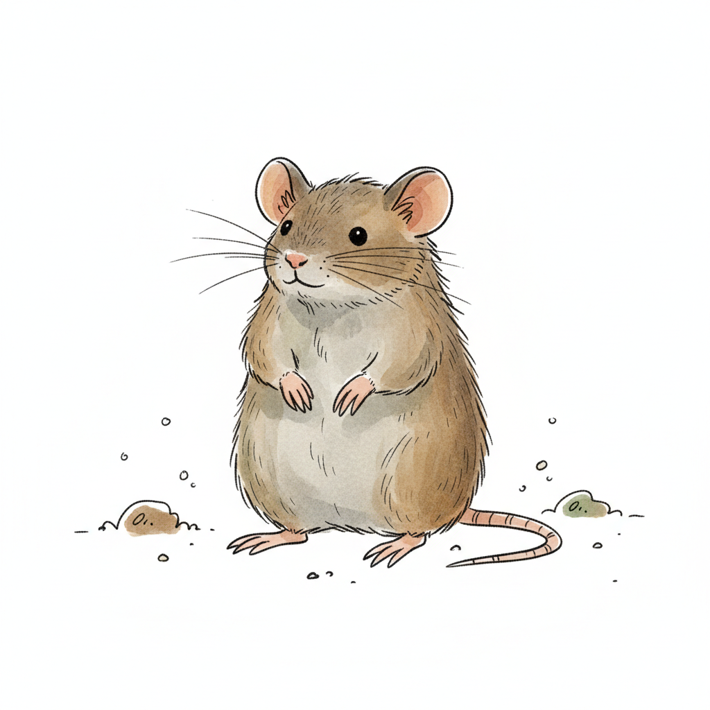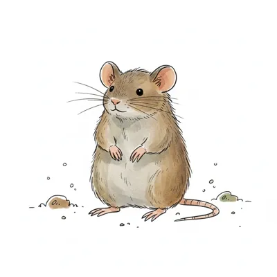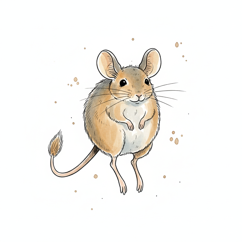 Süße, braune Maus-Illustration, aufrecht stehend, mit Schnurrhaaren und großen Ohren.