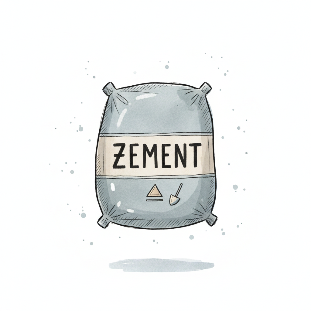 Eine illustrierte Zementsack mit der Aufschrift 'ZEMENT' auf weißem Hintergrund.