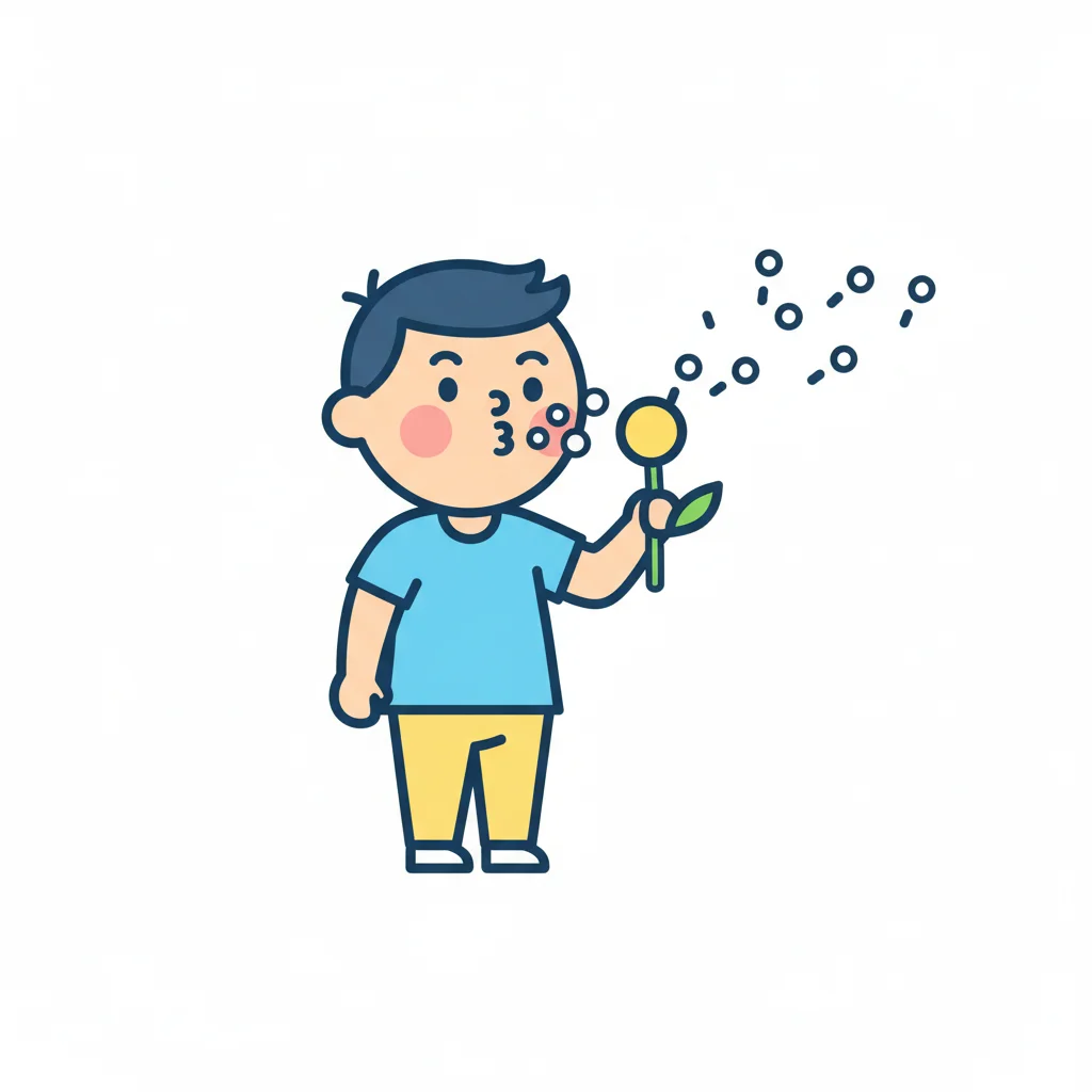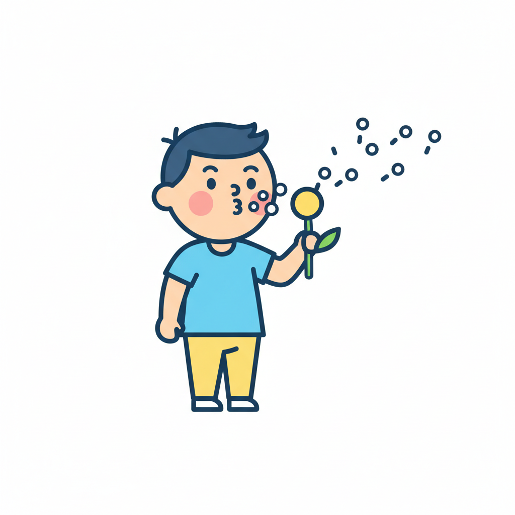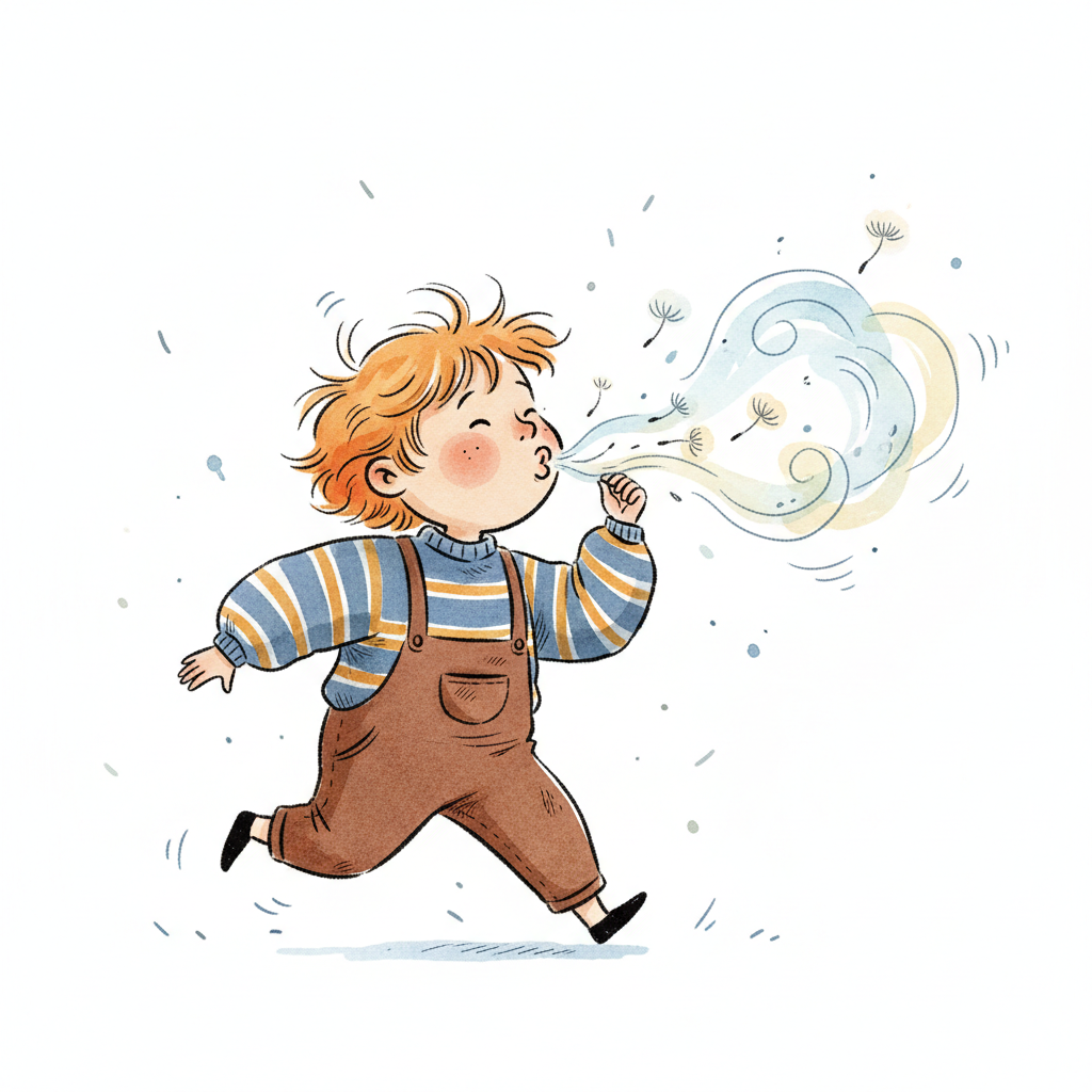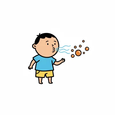 Ein niedliches Cartoon-Kind bläst mit vollen Backen Luft aus dem Mund.