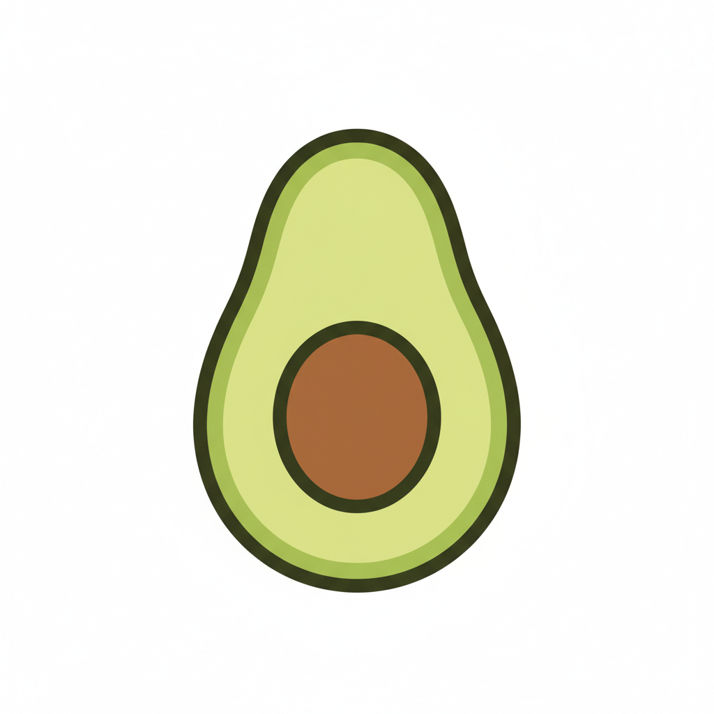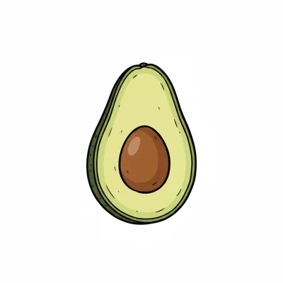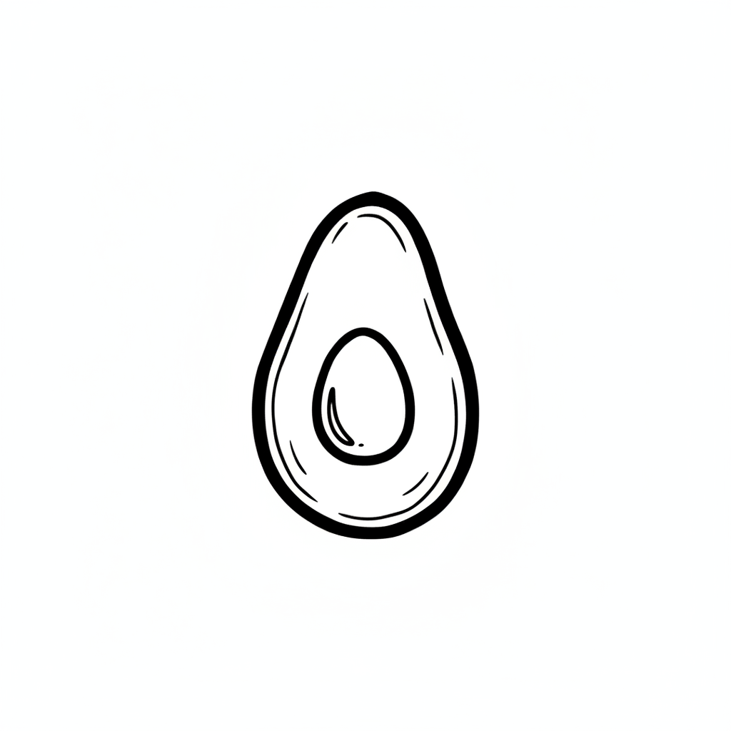 Stilisiertes Bild einer Avocado mit sichtbarem Kern.