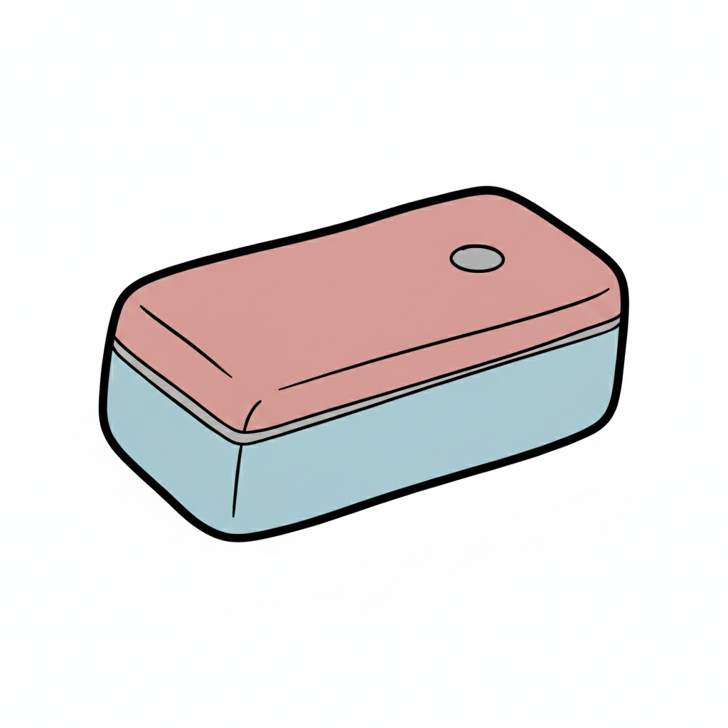 Buntes Radiergummi mit einer rosa Oberseite und blauer Unterseite.