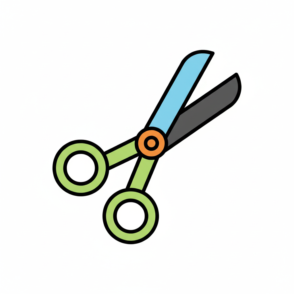Bunte Schere mit runden Griffen und scharfen Klingen.