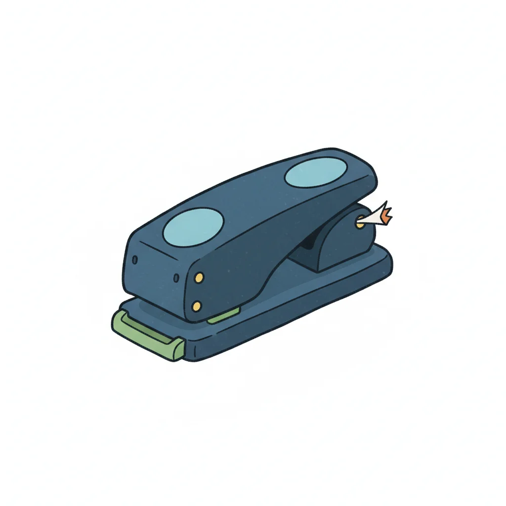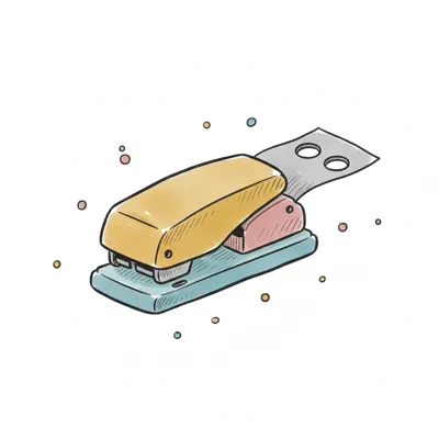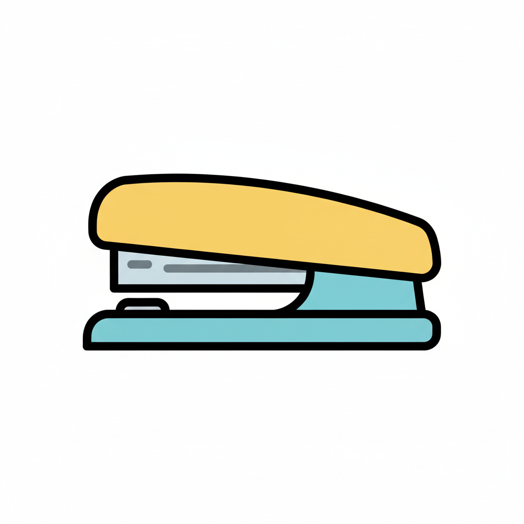 Bürobedarf: ein einfacher, stilisierter Tacker in gelb und blau.