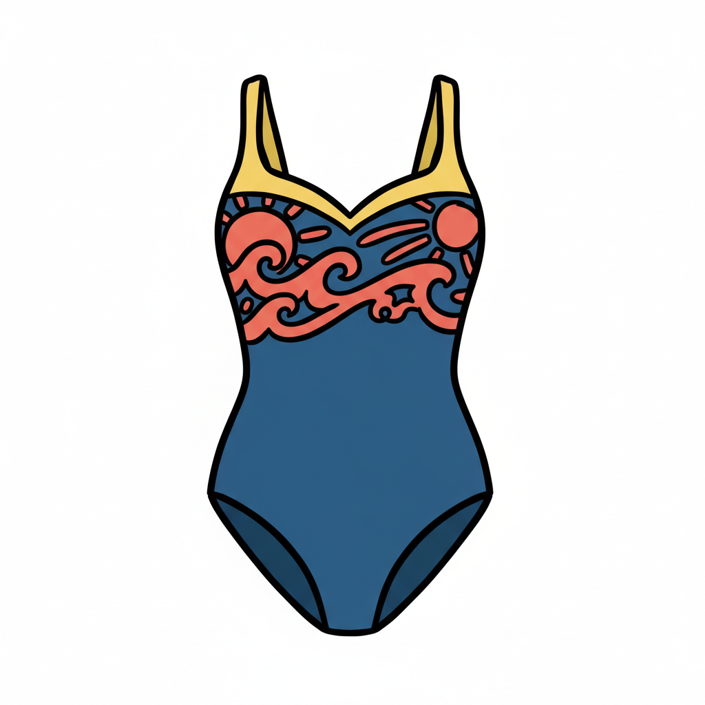 Ein einfaches, skizziertens Badeanzug-Design in Schwarz-Weiß.