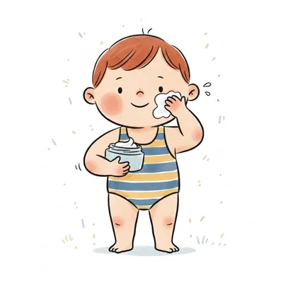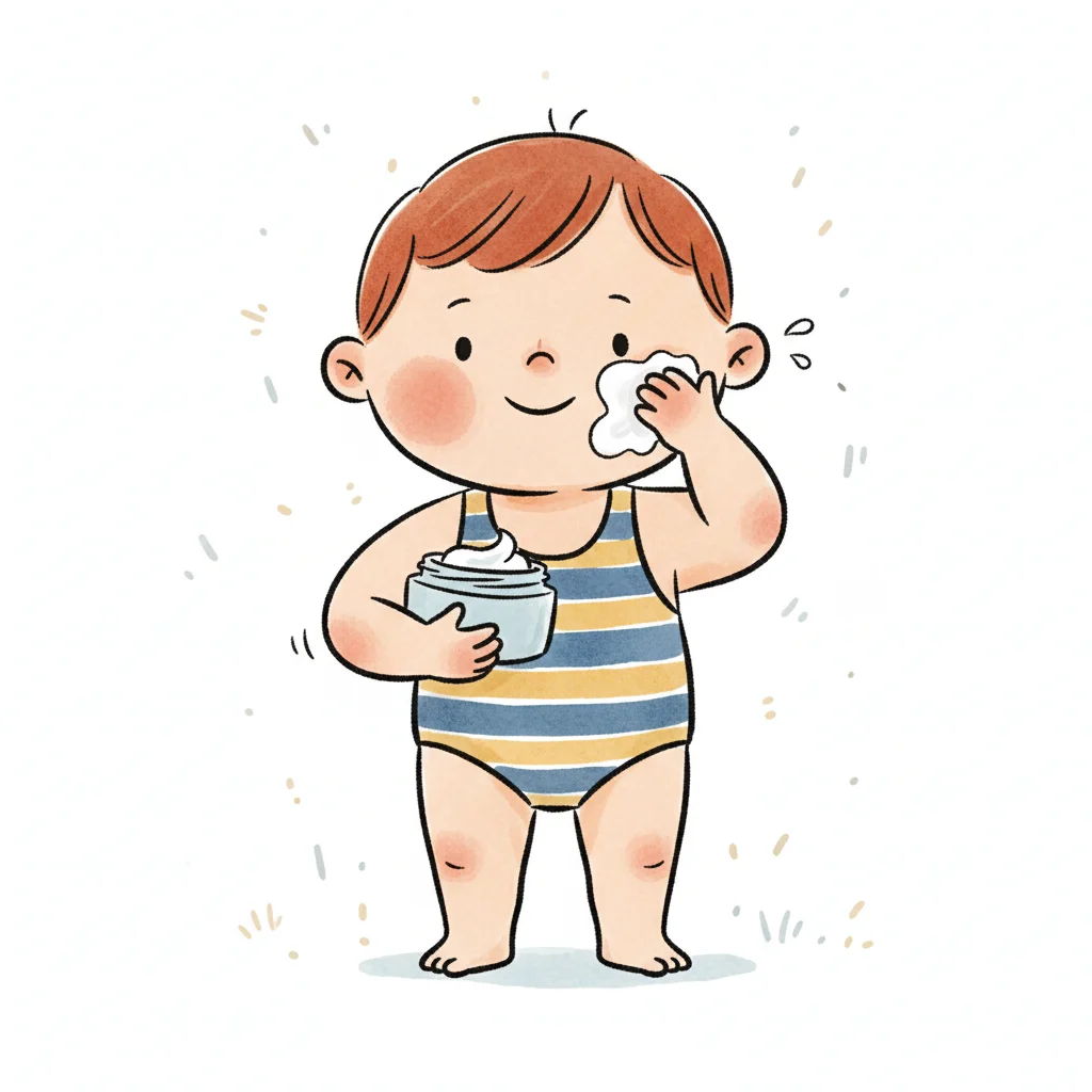 aquarell doodle-stil sich eincremen kind badeanzug creme