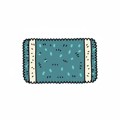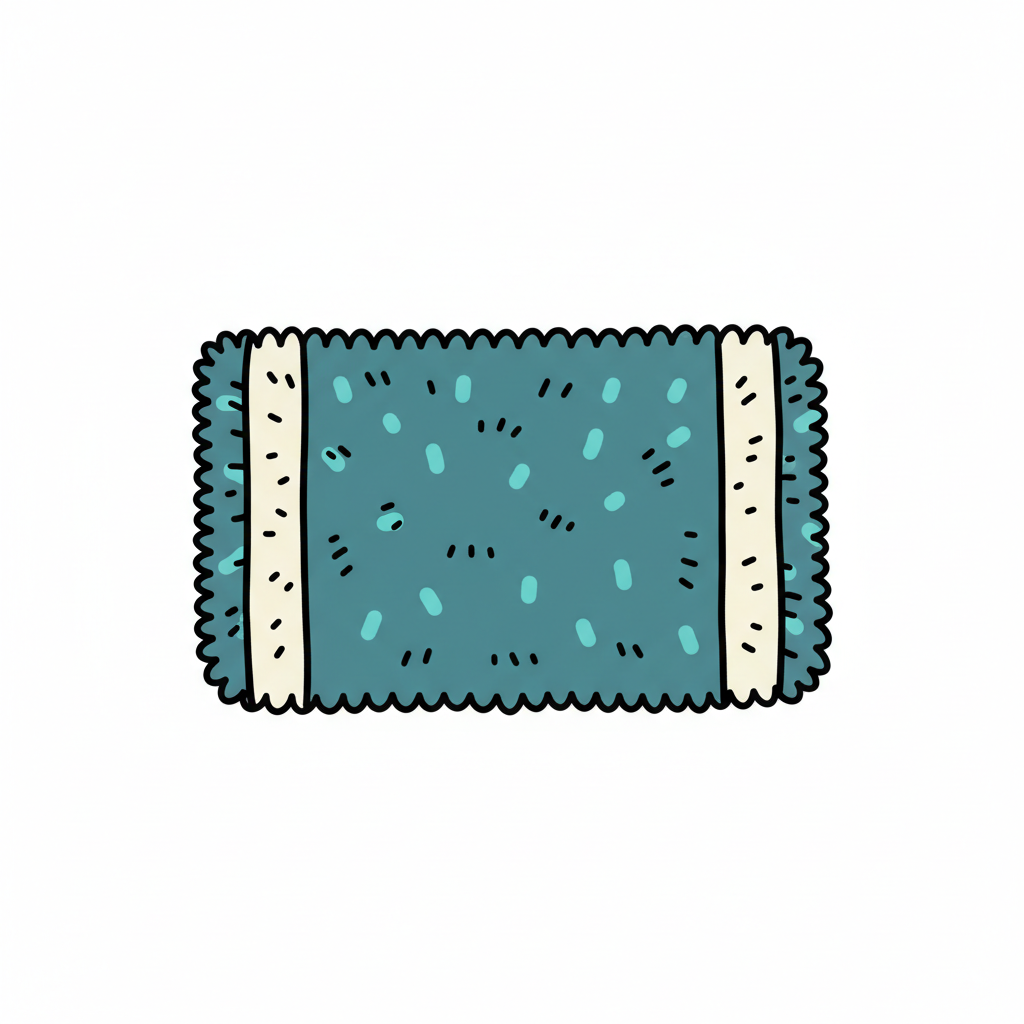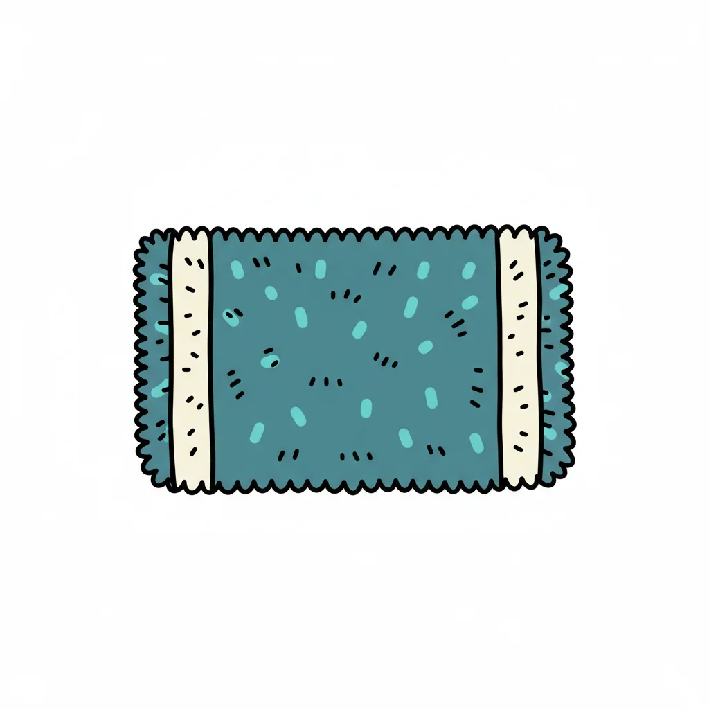 Handgezeichneter, türkisfarbener Teppich mit Punktmuster und gewellten Kanten.