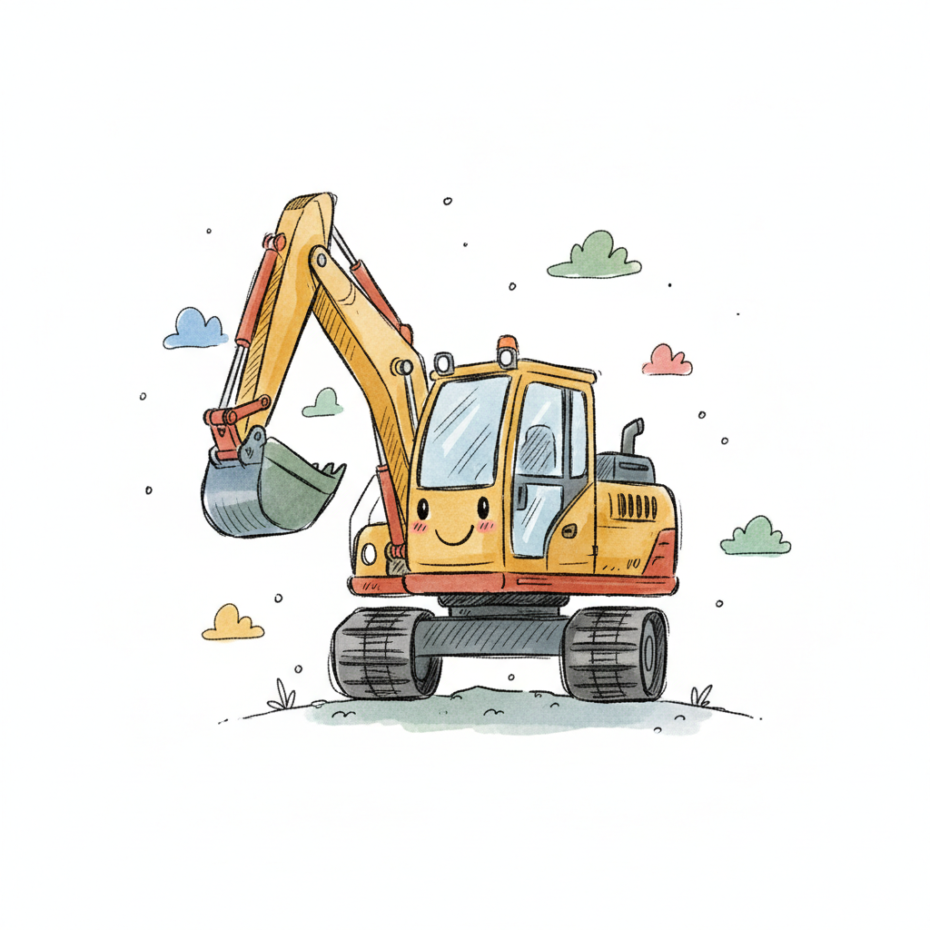 aquarell cartoon bagger konstruktion