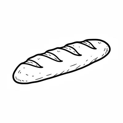 Ein einfach gezeichnetes, längliches Brot mit typischen Schnittmustern.