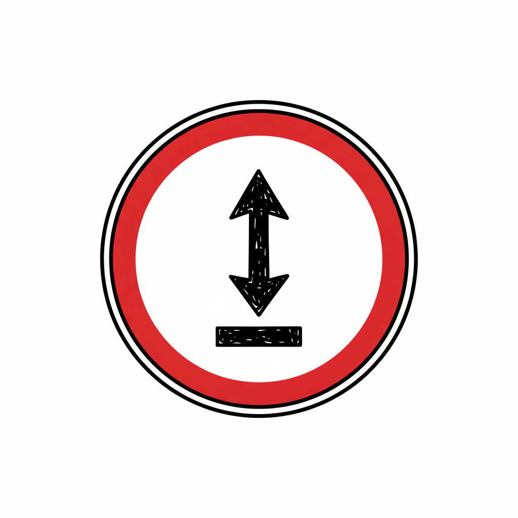 Rotes Rundschild mit schwarzem Doppelpfeil und Balken, deutet auf Höhenbegrenzung hin.