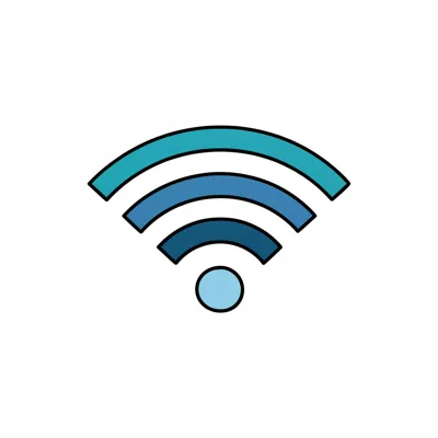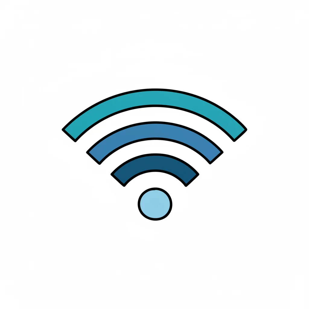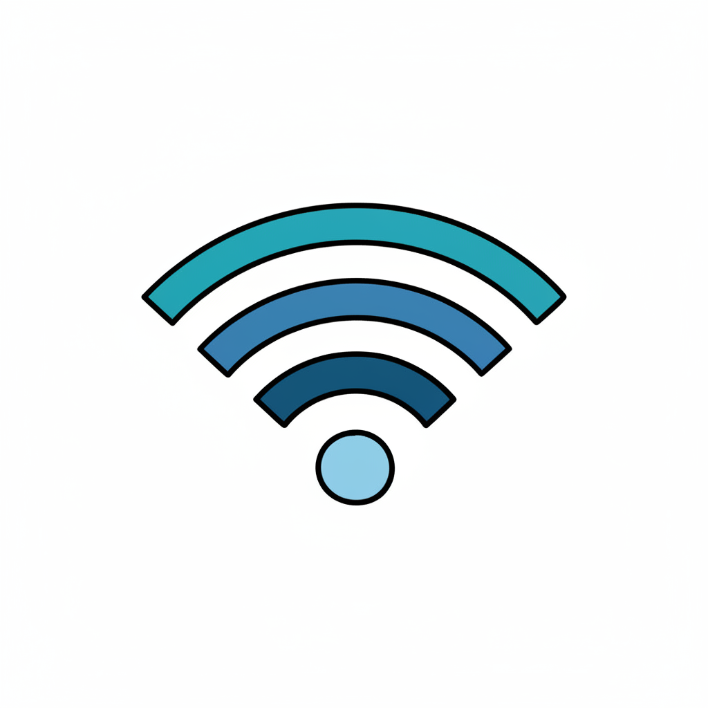 Ein blaues WLAN-Symbol mit drei Signalbalken auf weißem Hintergrund.