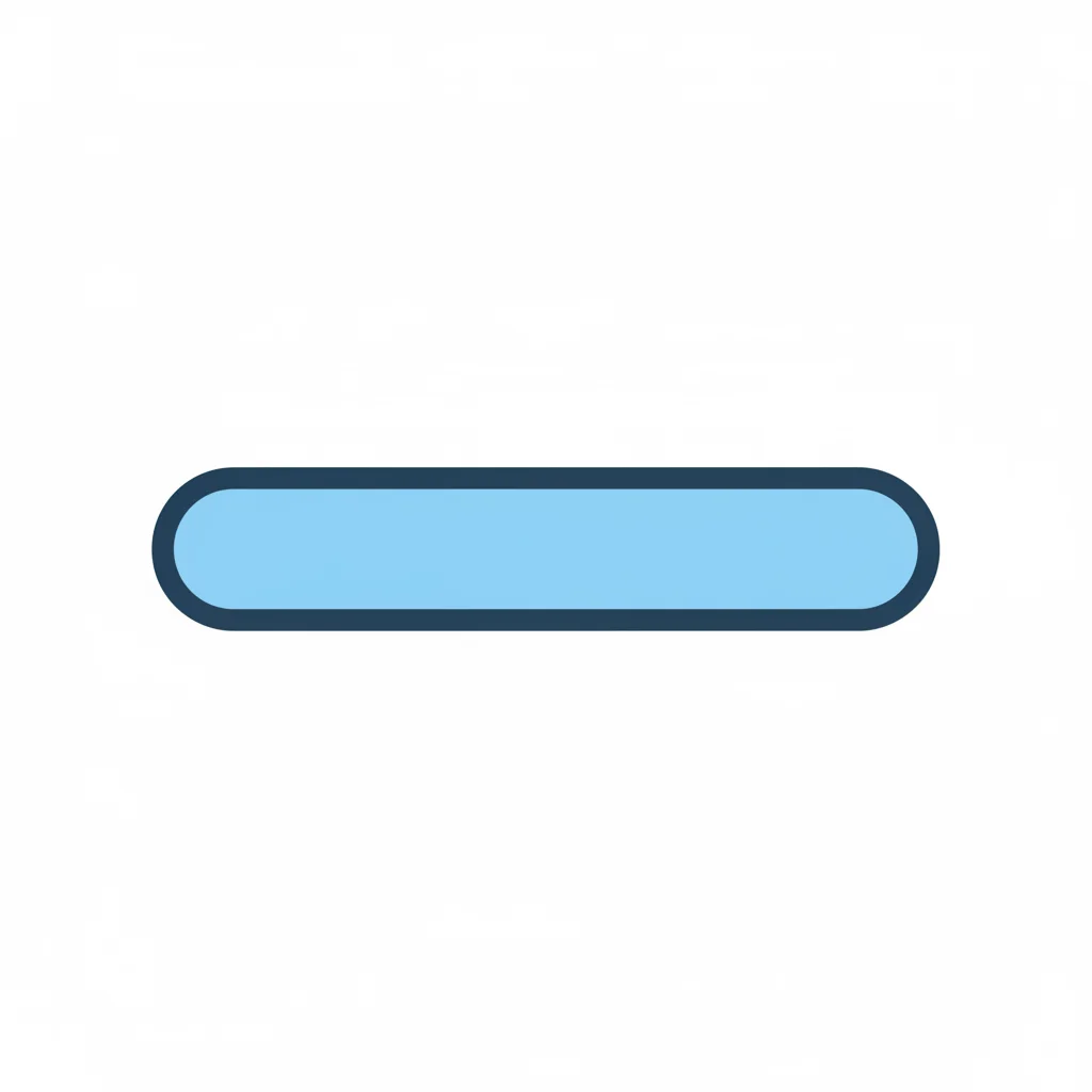 Blauer, horizontaler Balken mit abgerundeten Enden und dunklem Rand, oft als Minuszeichen genutzt.