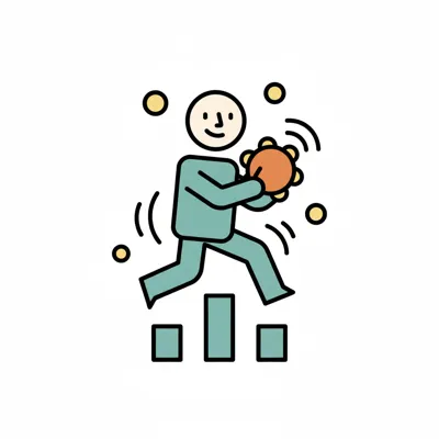 Ein Kind, umgeben von Symbolen für tägliche Routinen und Hobbys, mit einem Fortschrittsbalken.