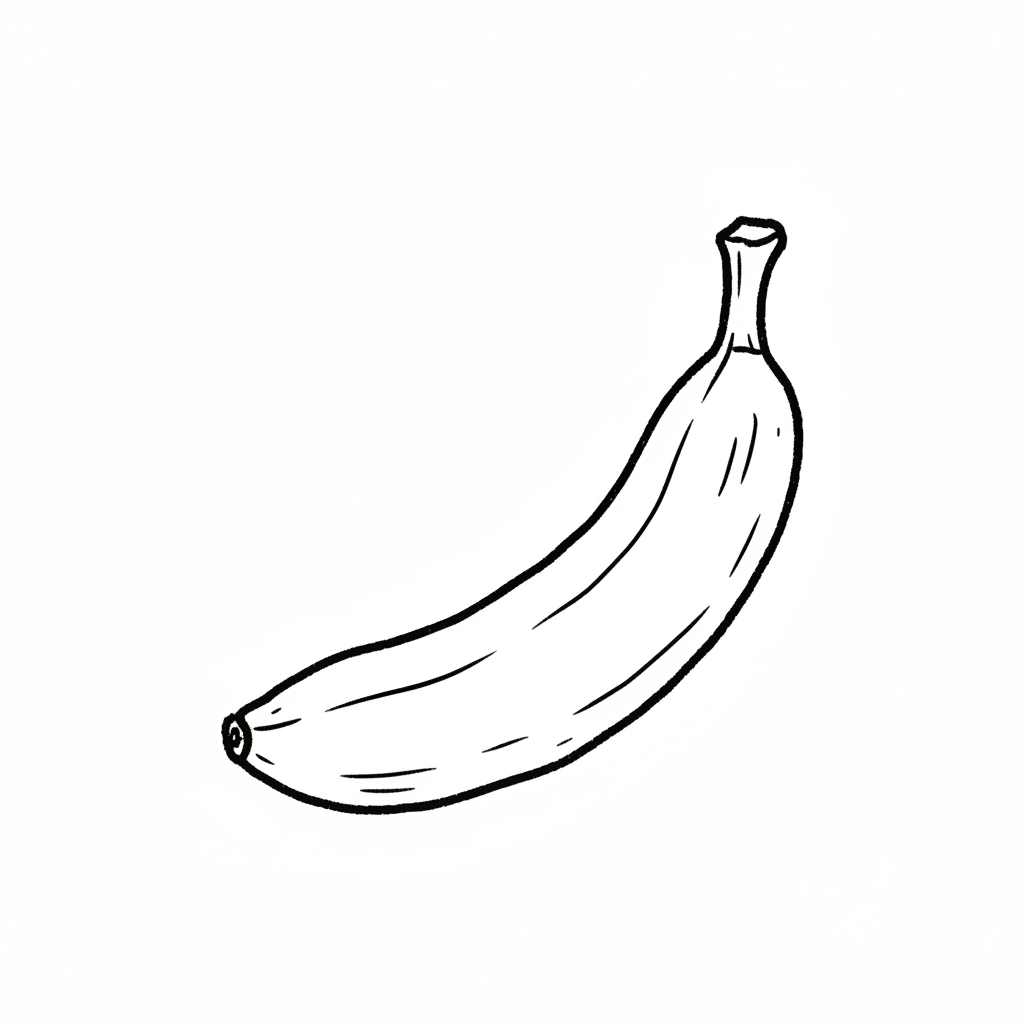 Eine gezeichnete Banane in einfachem Schwarz-Weiß-Stil.