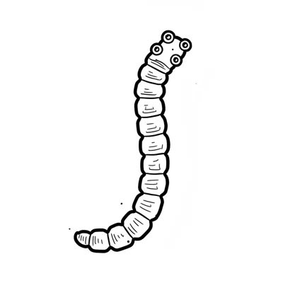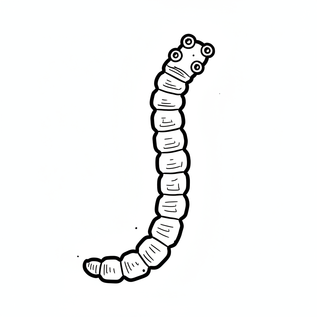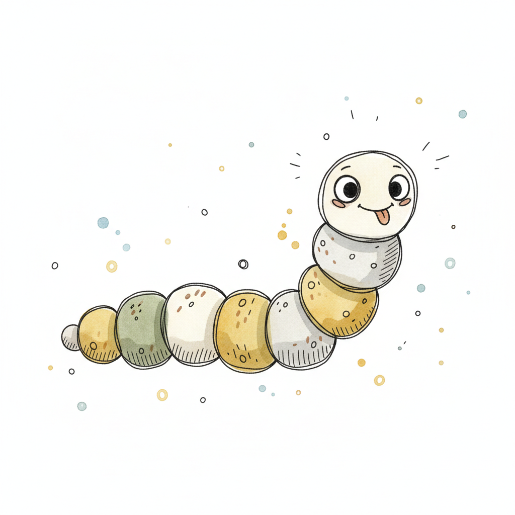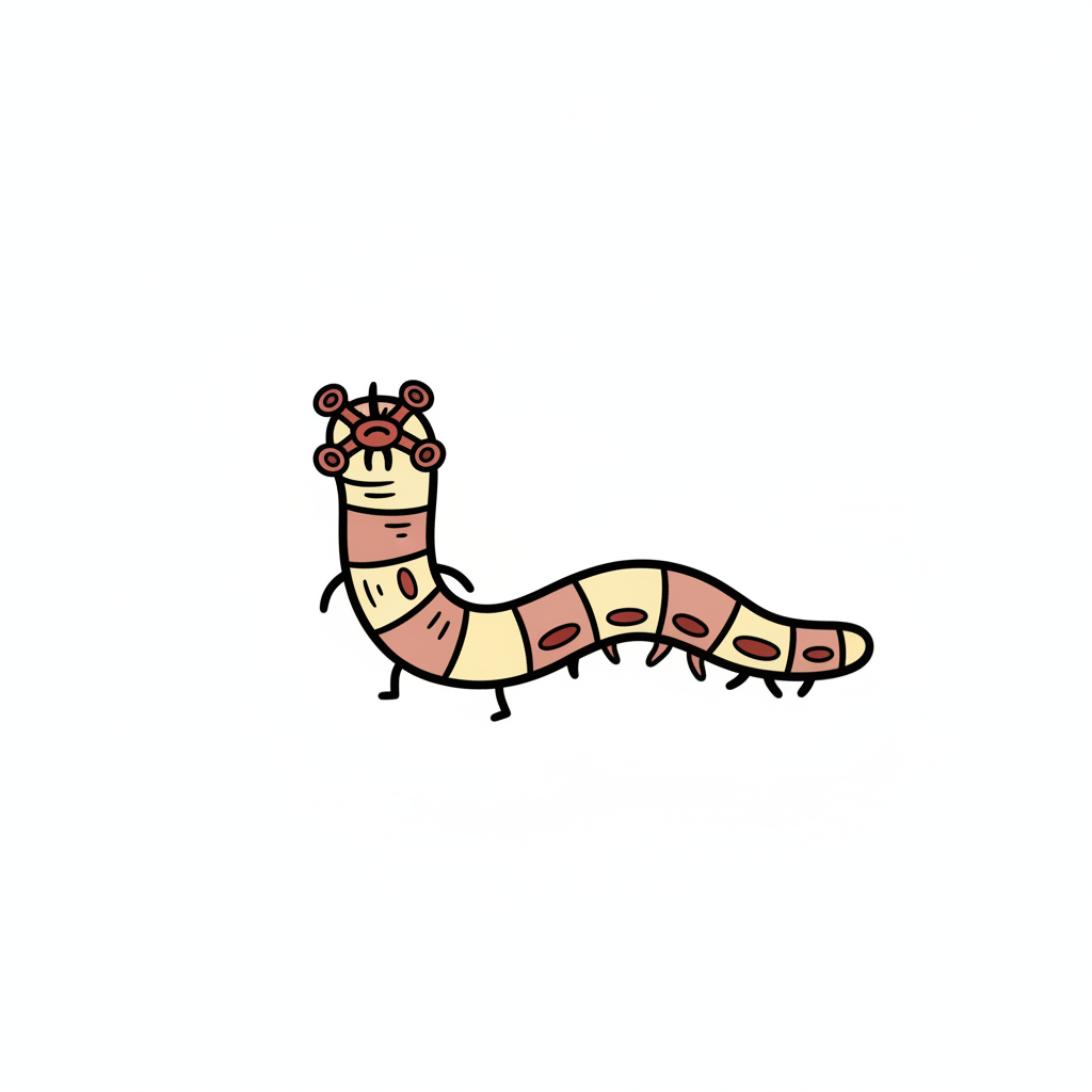 Ein cartoonartiger Wurm mit großen Augen und segmentiertem Körper.