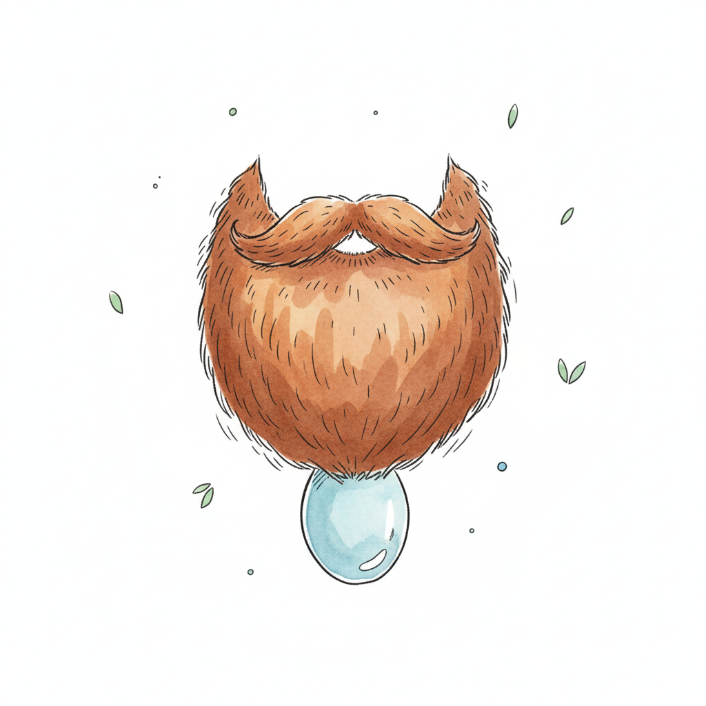 Aquarell-Illustration eines roten Bartes mit Schnurrbart und einem glänzenden Wassertropfen.