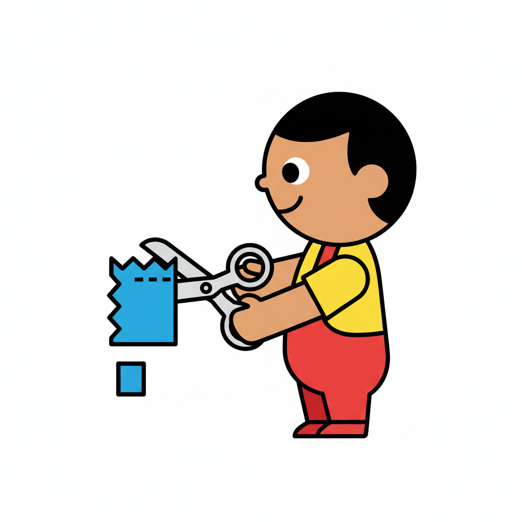 Minimalistische Vektorillustration im flächigen Icon-Stil. Sehr einfache, reduzierte Formen mit klaren, dicken Konturen und wenigen Details. Flächige Farben ohne Verläufe oder Texturen, ruhige Farbpalette, klare Silhouette und gut lesbare, freundliche Figur. Moderne, kindgerechte Lernillustration im Stil einfacher Piktogramme, sauberer Hintergrund und übersichtliche Komposition. Hoher Kontrast, isoliert auf weißem Hintergrund. WICHTIG: KEIN TEXT im Bild. Hintergrund: Rein weiß.