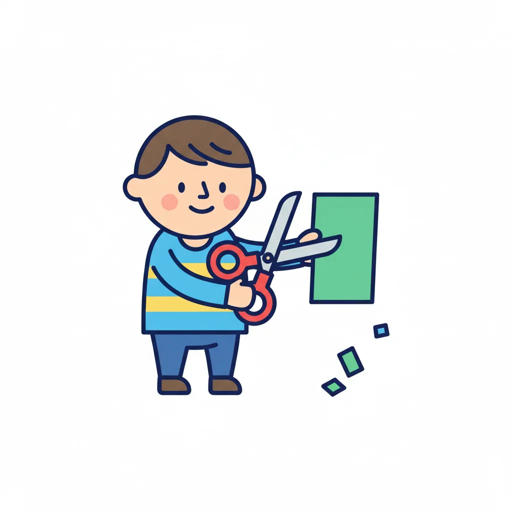 Ein Kind schneidet Papier mit einer Schere und lässt Formen fallen.