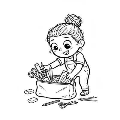 Ein Kind durchsucht eine Tasche voller Bastelmaterialien.