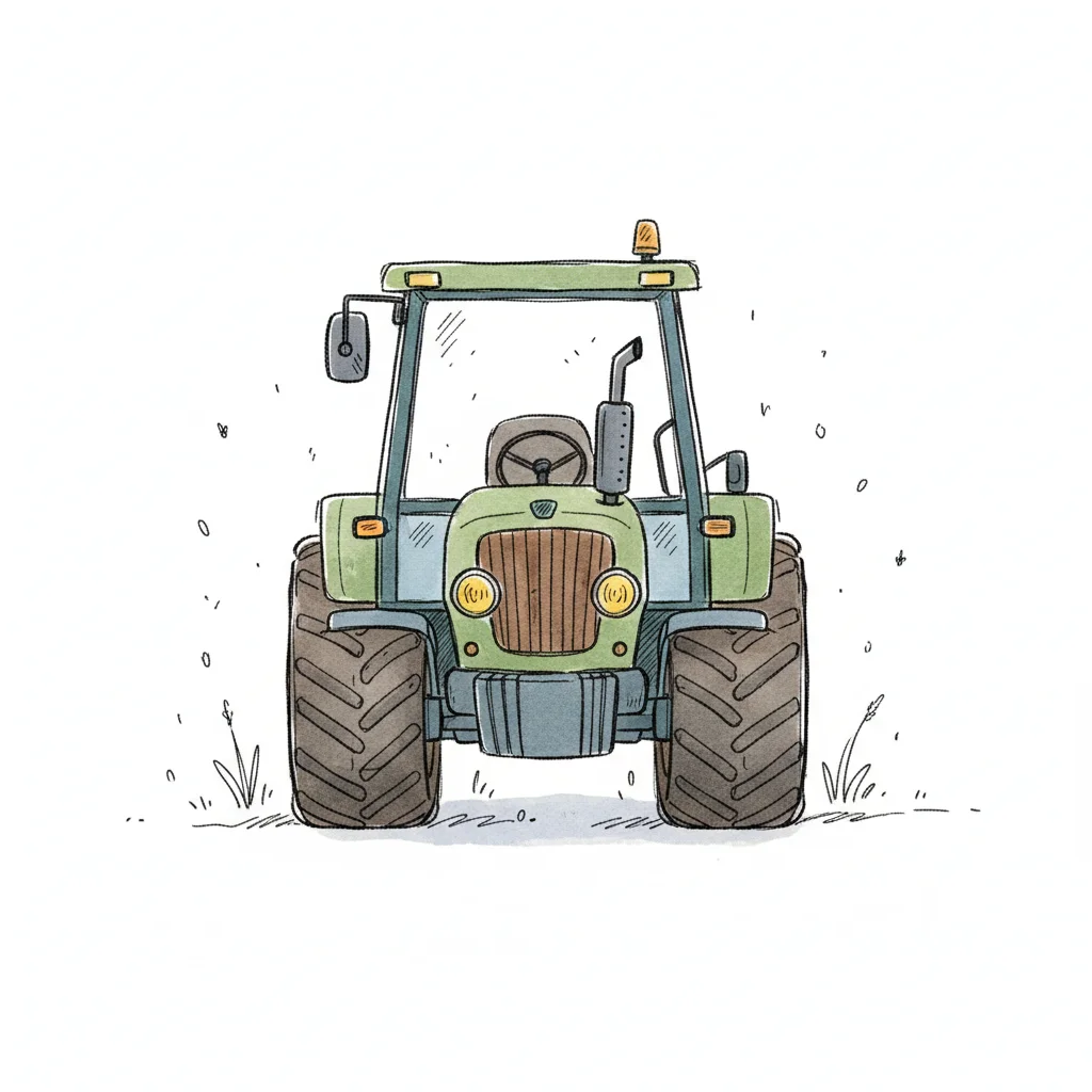 Ein bunter Traktor mit großen Reifen und einem einfachen Design.
