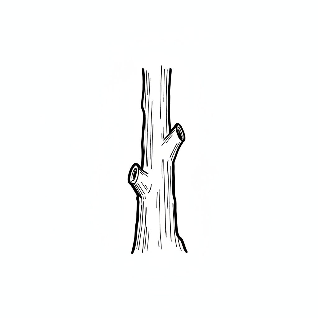 Illustration eines braunen Baumstamms mit abzweigenden Ästen.