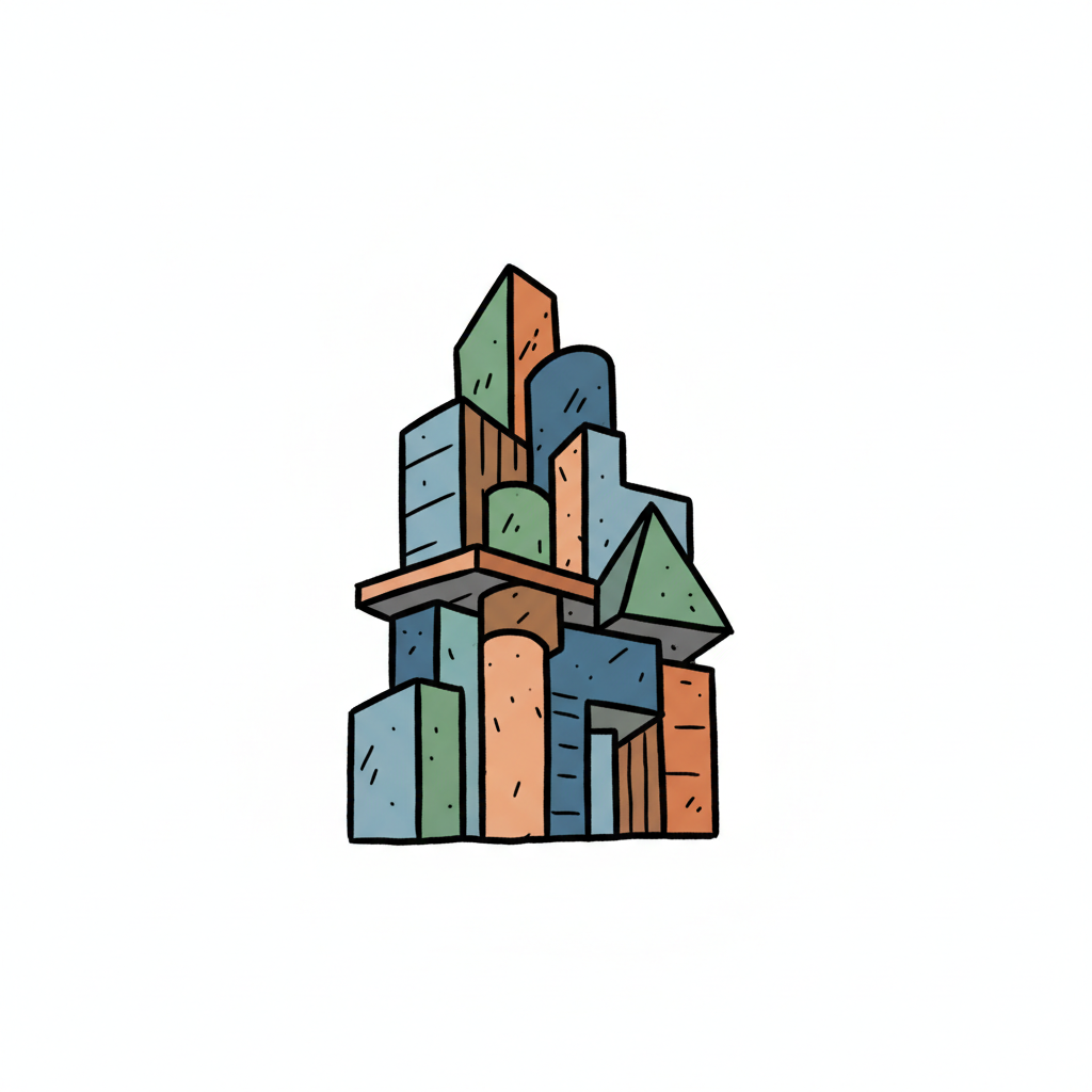 Illustration von bunten, gestapelten Bauklötzen in verschiedenen geometrischen Formen.