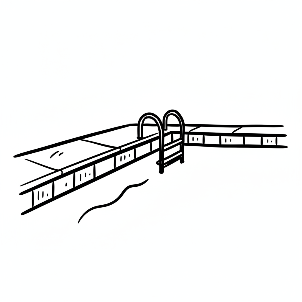 Einfache Strichzeichnung eines Schwimmbeckens mit Leiter und Beckenrand.
