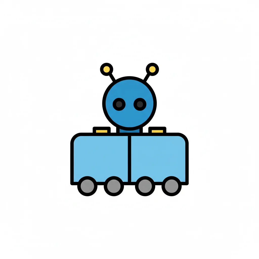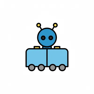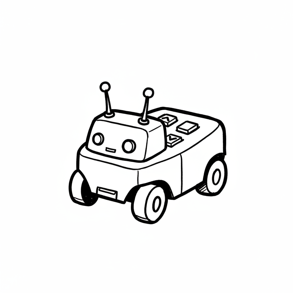 Ein niedliches, gezeichnetes Roboterauto mit Antennen und freundlichem Gesicht.