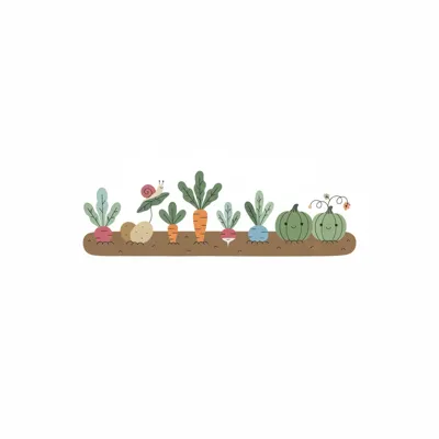 Niedliche Cartoon-Illustration eines Gemüsegartens mit fröhlichen Kürbissen und einer Schnecke.