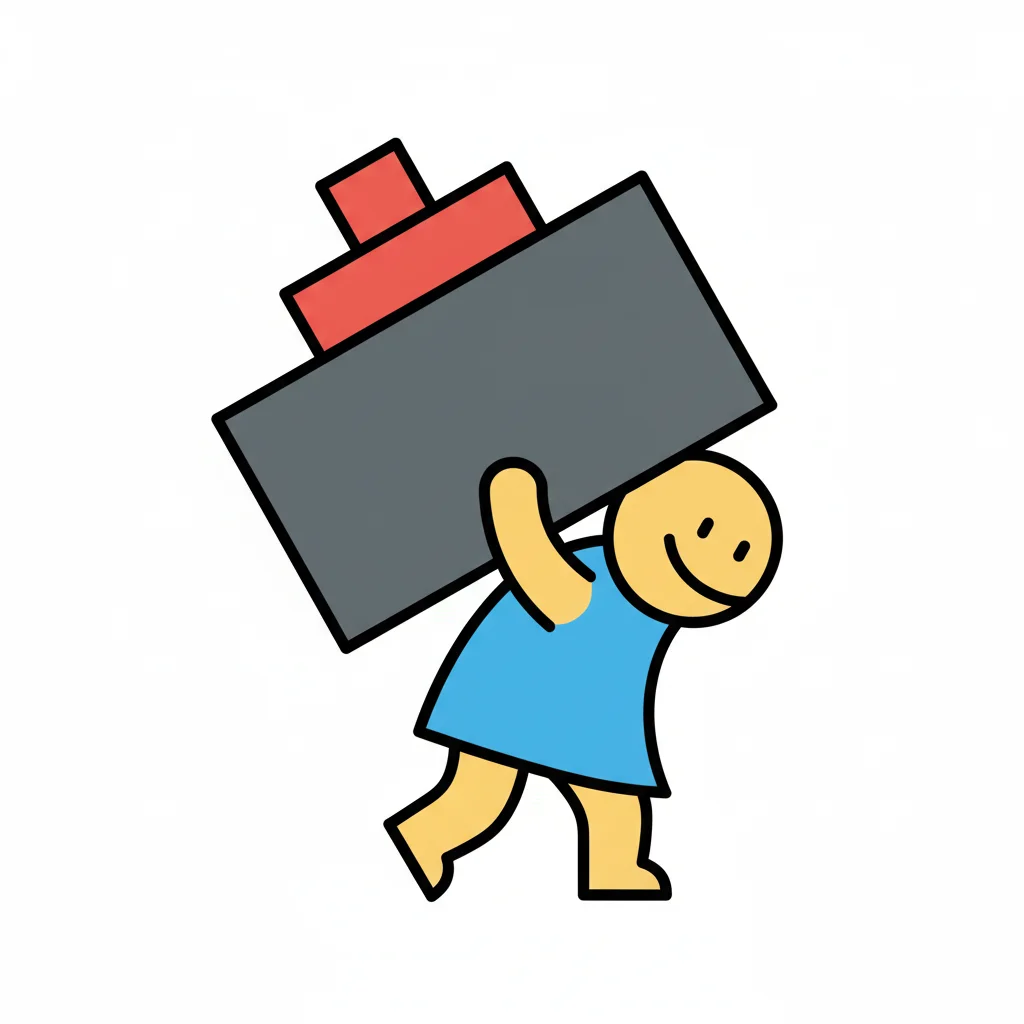 Ein lächelndes Männchen trägt eine große, gestapelte Last auf dem Rücken.
