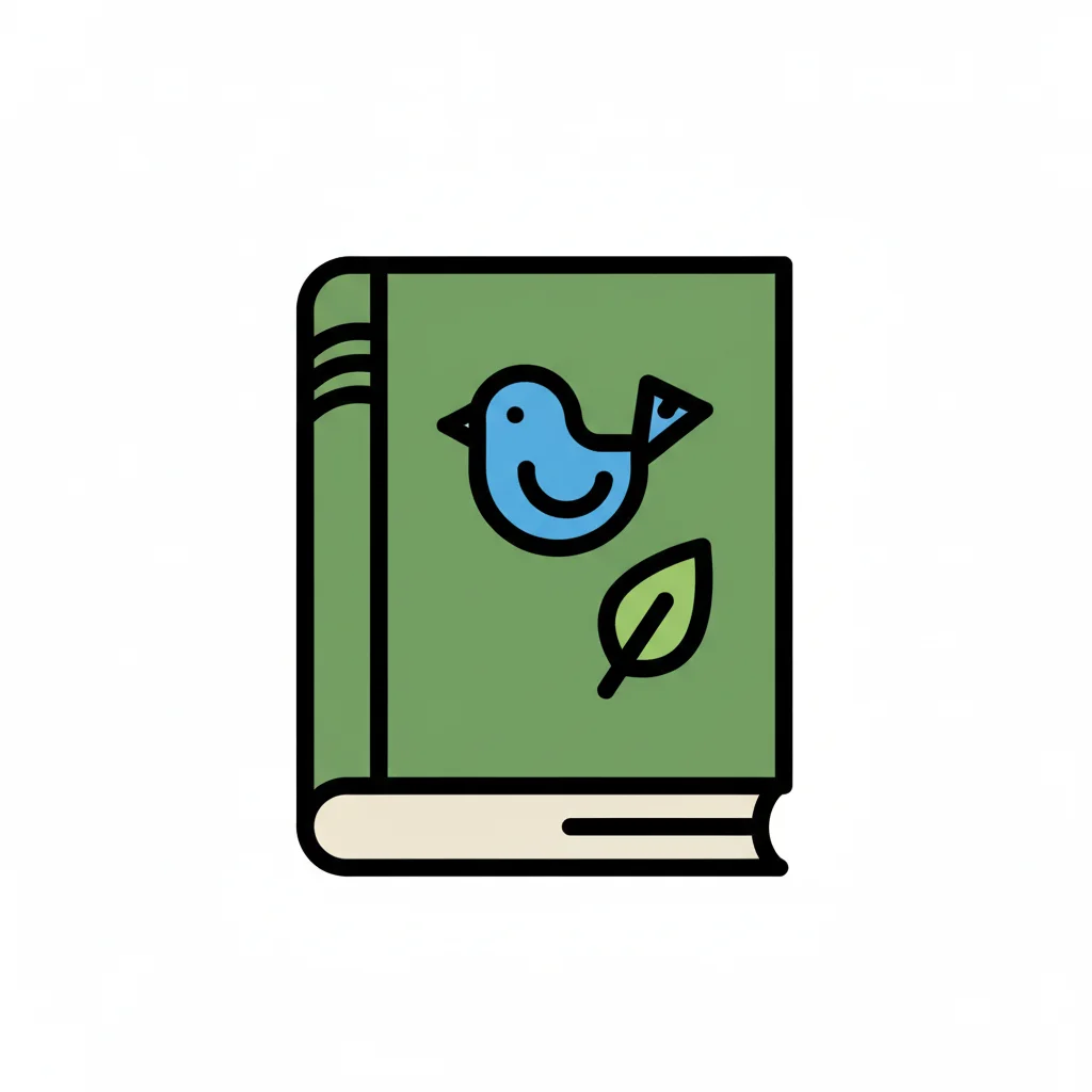 Grünes Buch mit blauem Vogel und Blatt auf dem Cover, im einfachen Icon-Stil.