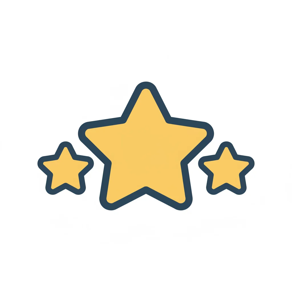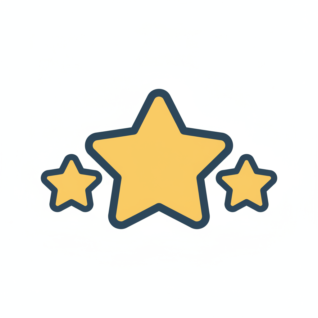 Drei gelbe Sterne mit blauem Rand, ein großer in der Mitte, zwei kleinere daneben, auf weißem Grund.