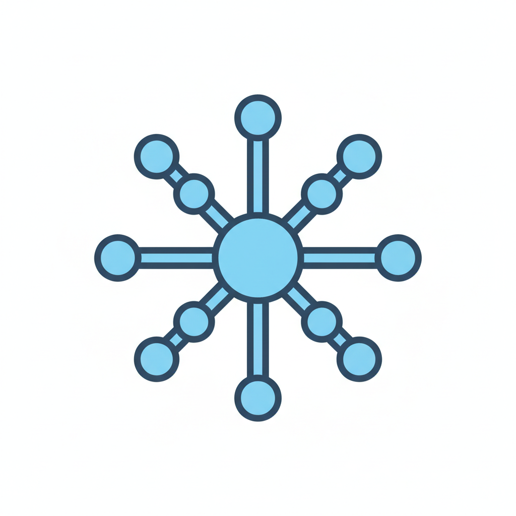 Symbol für Netzwerk oder Verbindung mit zentralem Punkt und Ästen.