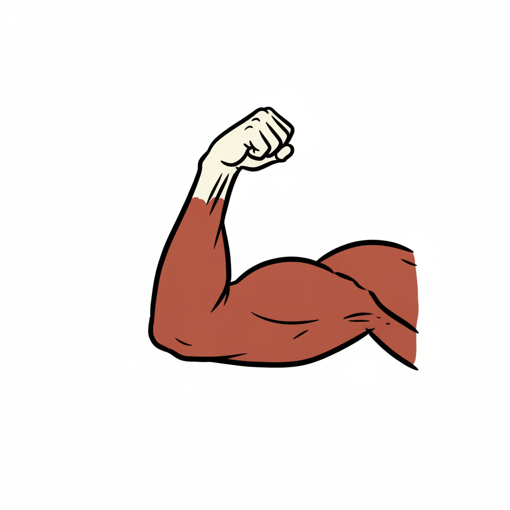 Cartoon-Illustration eines gebeugten Arms mit geballter Faust, der Stärke und Entschlossenheit zeigt.