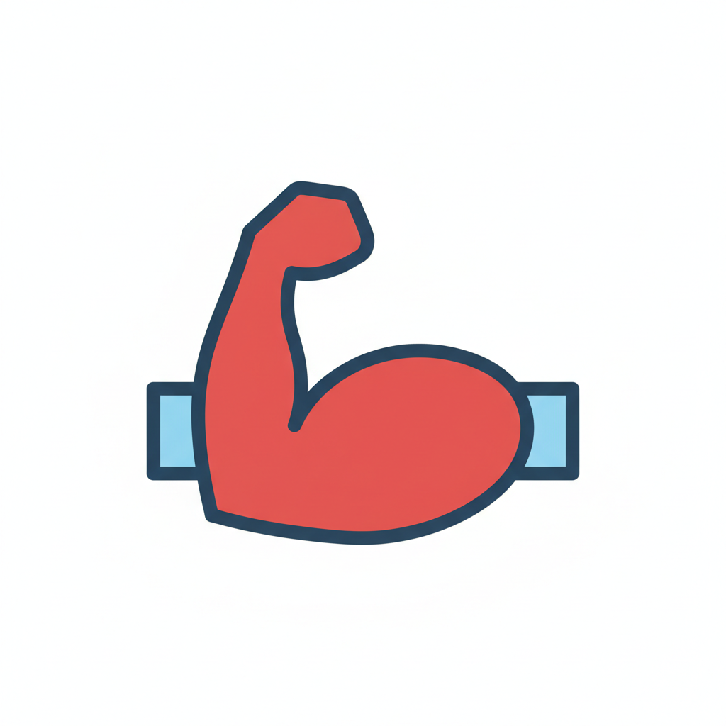 Stilisierter roter Bizeps-Muskel mit blauer Umrandung, der Kraft und Fitness darstellt.