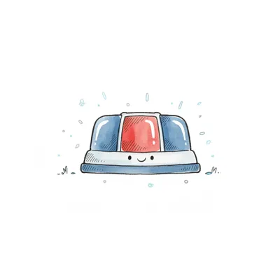 Niedliche, lächelnde Blaulichtleiste im Cartoon-Stil mit roten und blauen Lichtern.