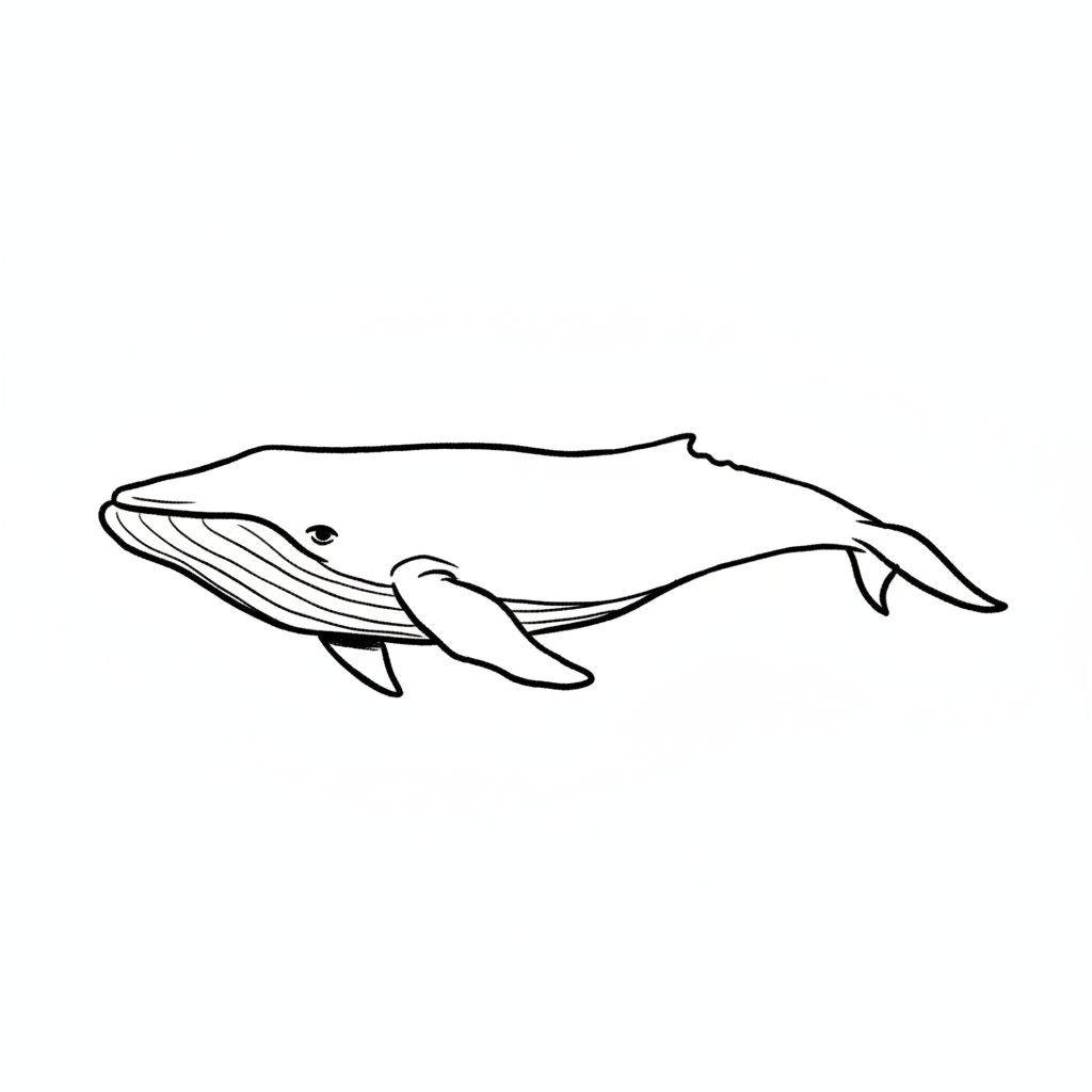 Ein skizzierter Wal schwimmt in einer minimalistischen Darstellung.