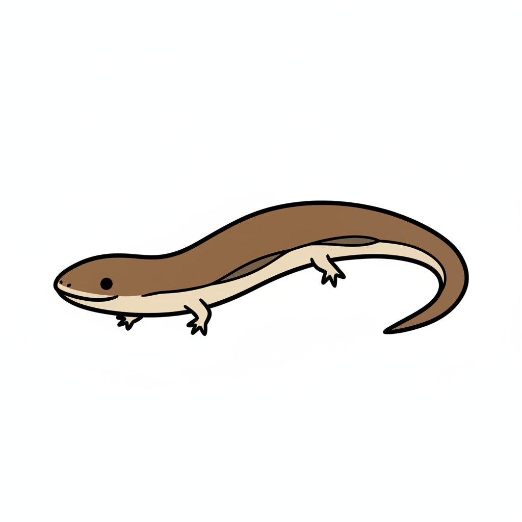 Ein cartoonartiger Salamander mit braunem Körper und einem langen Schwanz.