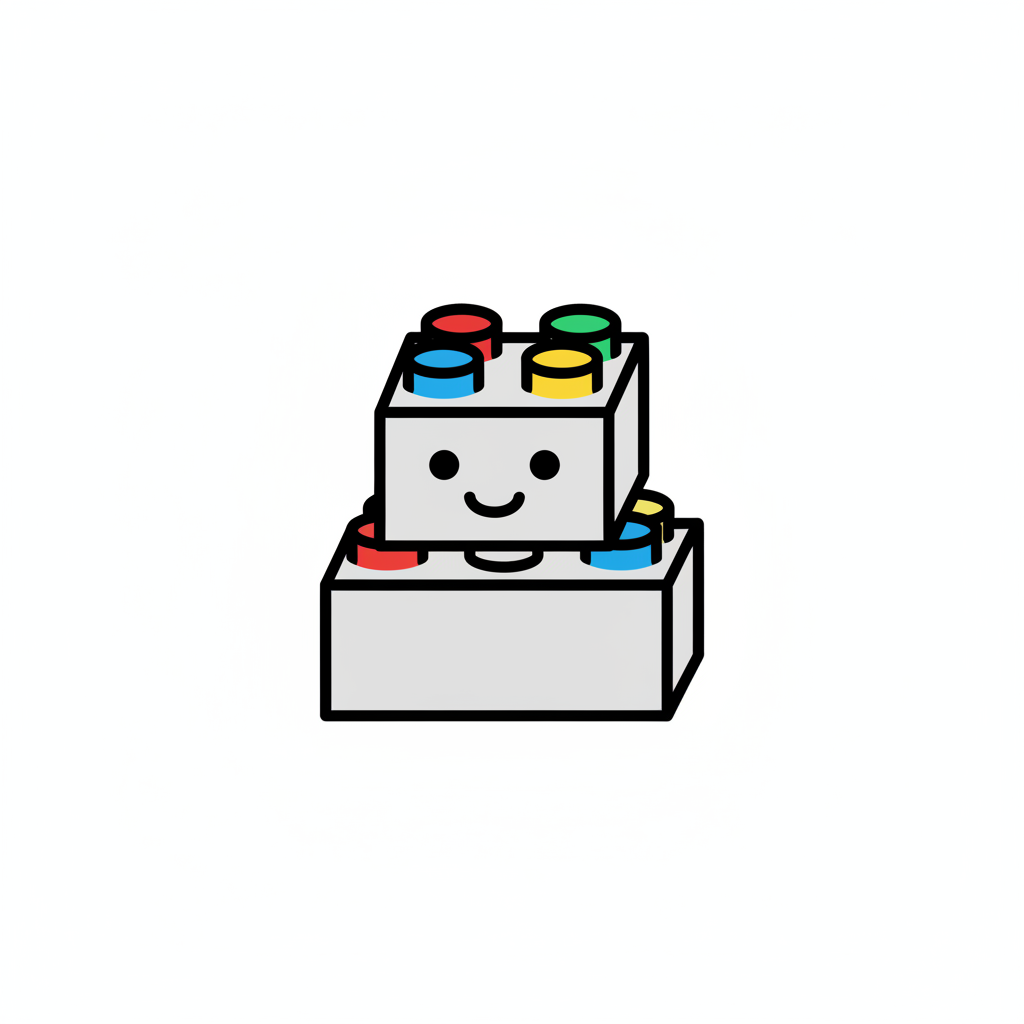 Ein lächelnder LEGO-Stein in bunten Farben auf einem grauen Block.