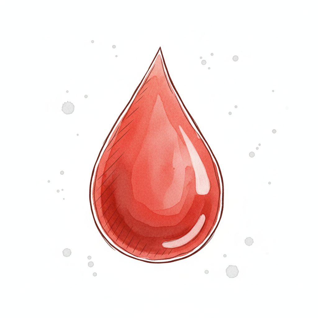 Illustration eines roten Tropfens im Aquarellstil auf weißem Hintergrund.
