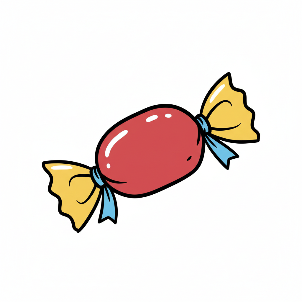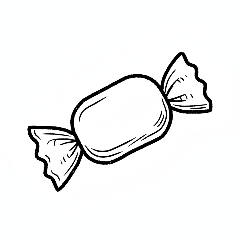Eine gezeichnete Süßigkeit in Bonbonform mit gewellten Enden.
