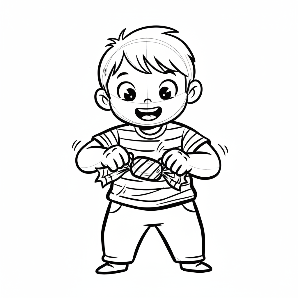 bonbon auswickeln lineart-stil junge geschenk freude
