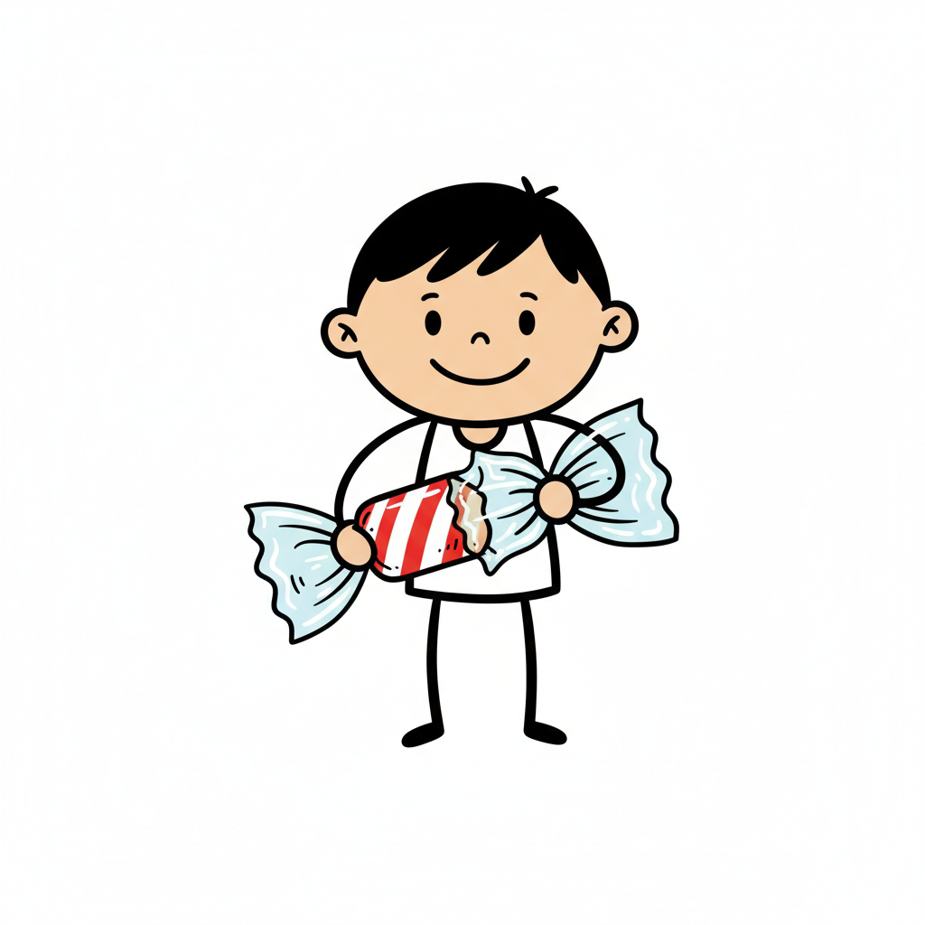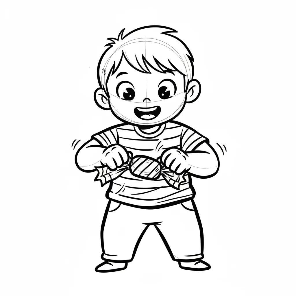 bonbon auswickeln junge süßigkeit freude nordic-bilderbuch-stil