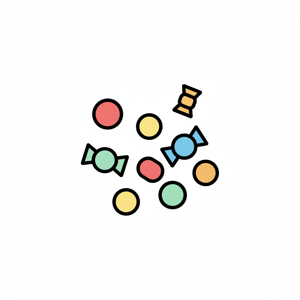 Handgezeichnete, bunte, runde und ovale Objekte, die an Kieselsteine oder Bonbons erinnern.
