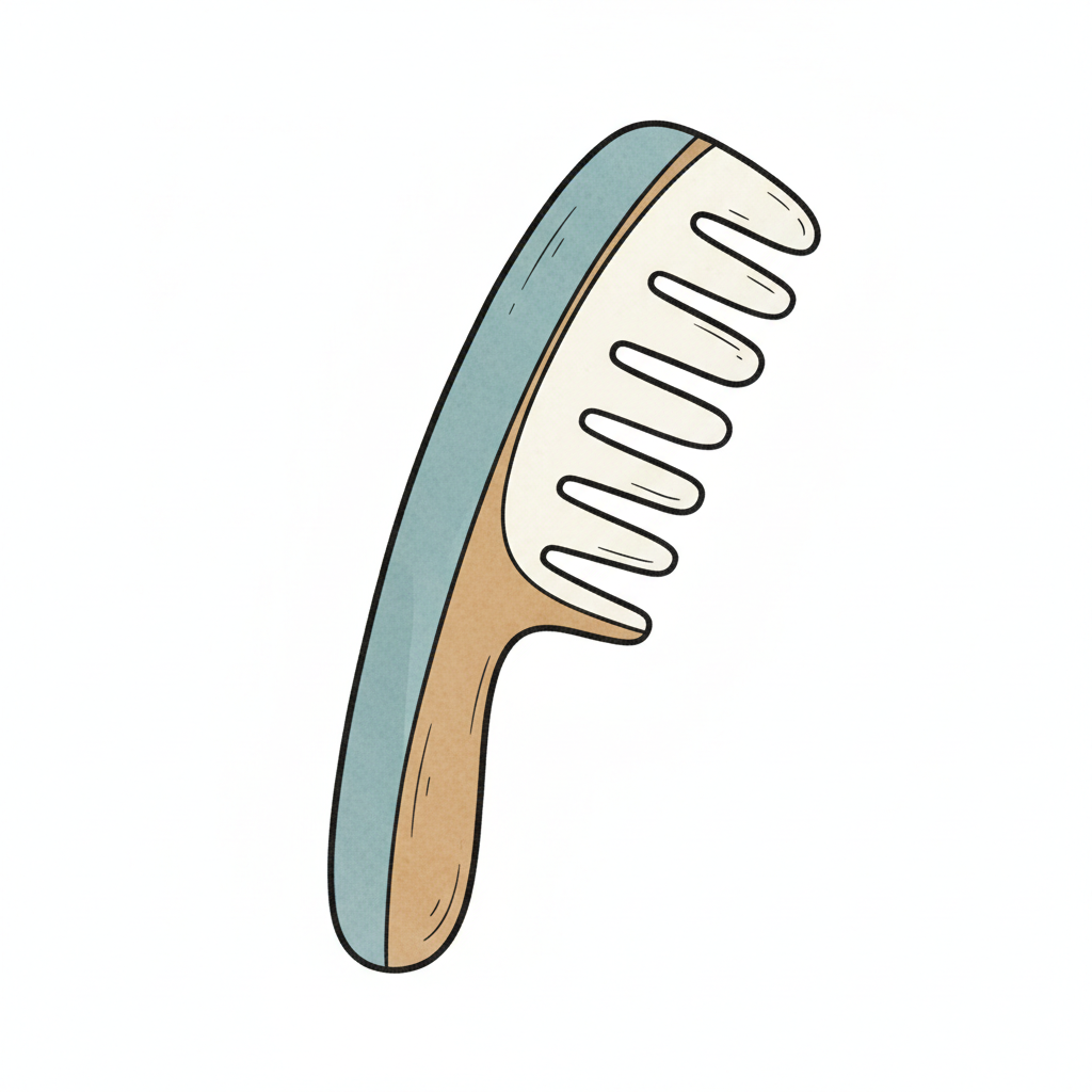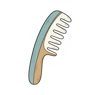 Ein stilisierter Kamm mit einer blauen und braunen Grifffarbe.