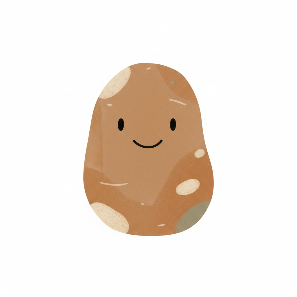 Eine niedliche, lächelnde Kartoffel mit brauner Farbe.