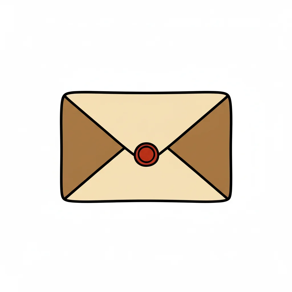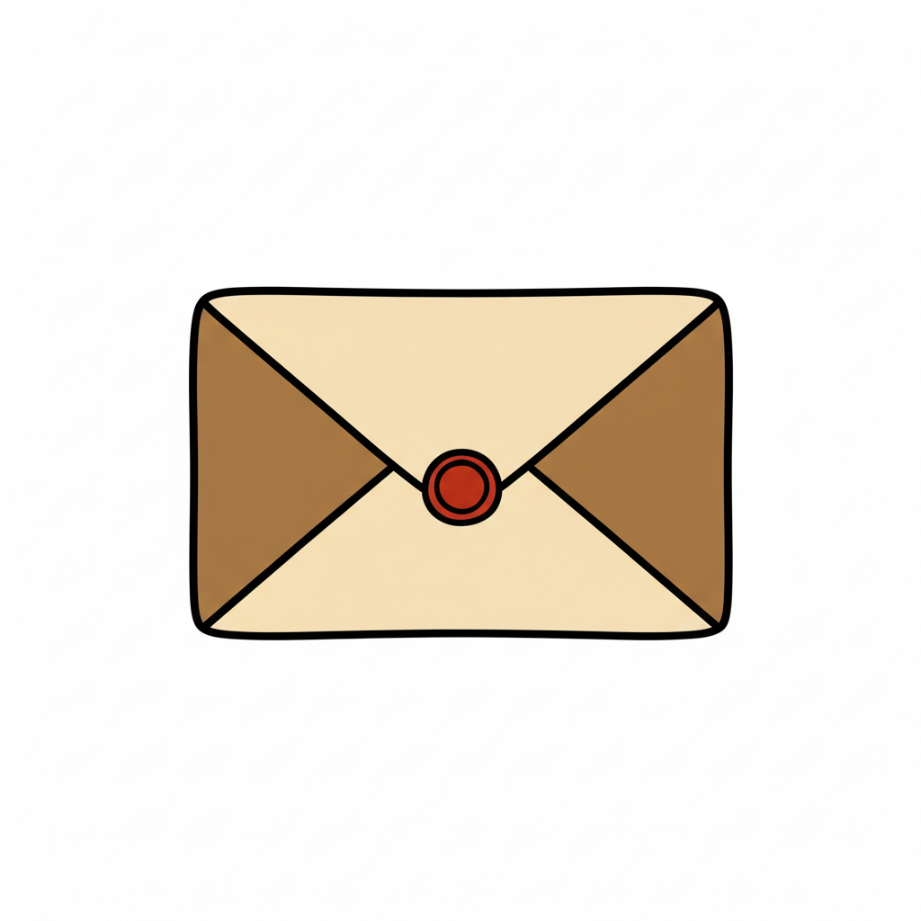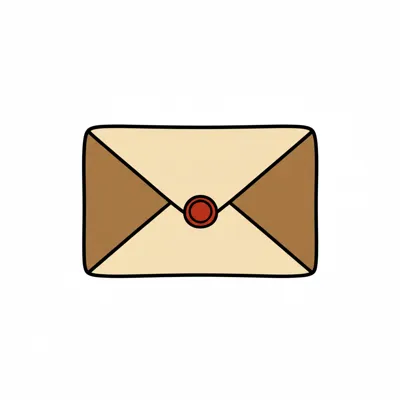 Eine handgezeichnete, geschlossene Briefumschlag-Illustration mit rotem Wachssiegel.