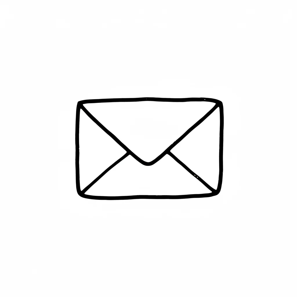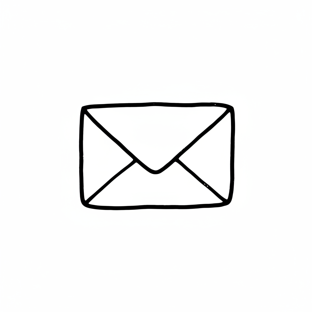 Eine einfache, handgezeichnete Skizze eines geschlossenen Briefumschlags in Schwarz-Weiß.