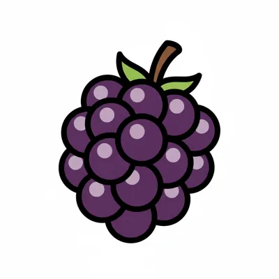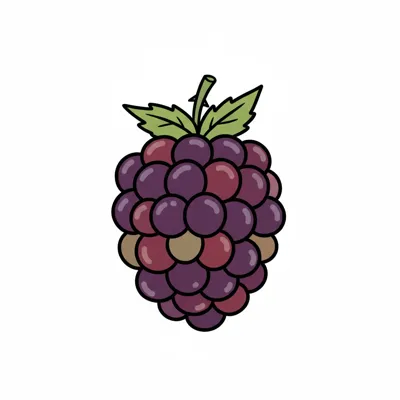 Eine detaillierte Illustration einer lila Traube mit Blättern.
