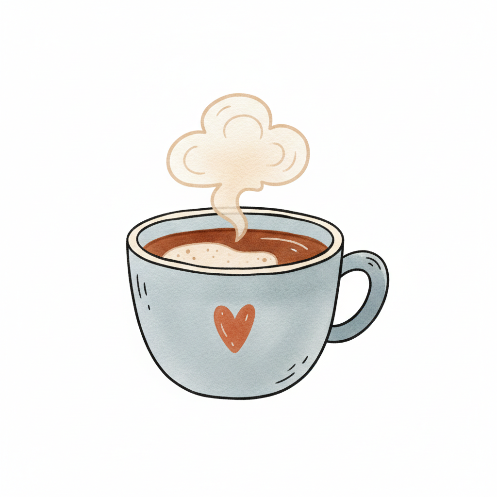 Ein süßes Kaffeetässchen mit Dampf und Herzmotiv.