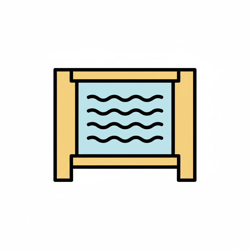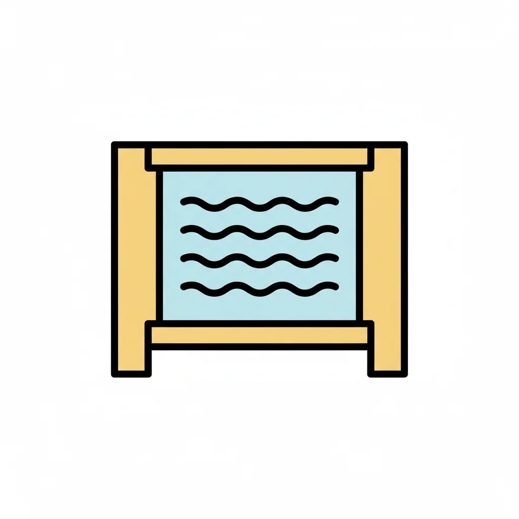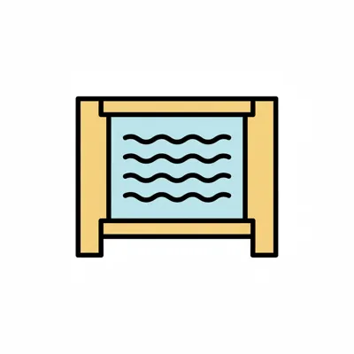 Einfaches, farbiges Icon eines Aquariums mit blauen Wellenlinien, die Wasser darstellen.